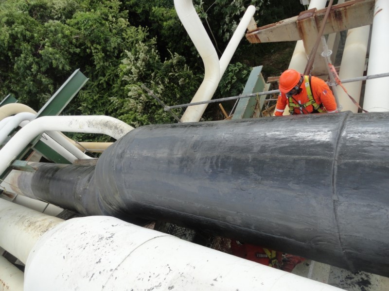 El sistema EMSOL® SCW-5000 conforma con las regulaciones del ASME PCC-2, ASME B31, ISO TS24817 como envoltura estructural no metálica.