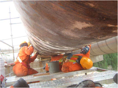 El sistema EMSOL® SCW-5000 es una envolvente no metálica reforzada para la rehabilitación estructural de tuberías y equipos de proceso con daños por corrosión, erosión, etc. El sistema está compuesto por 3 componentes: